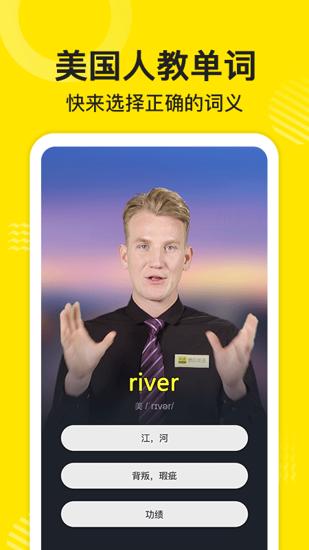 1、采用真人视频发音,由多名美国、英国演员以电影机画质进行单词发音的录制,看见口型才能学准发音。