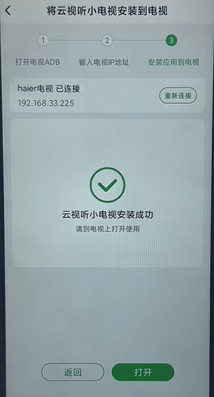 5、紧接着下方就可以查看扫码的IP了,点击相应IP连接(设备与电视在同一个网络情况下);