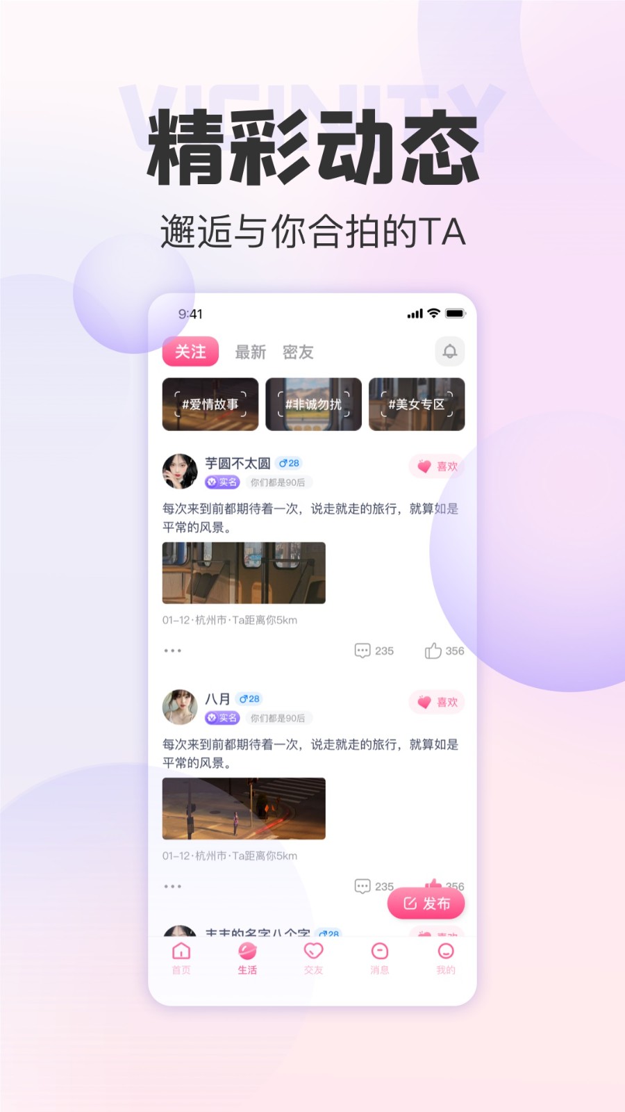 在动态广场中可以发现有趣的人,也能表达自我。
