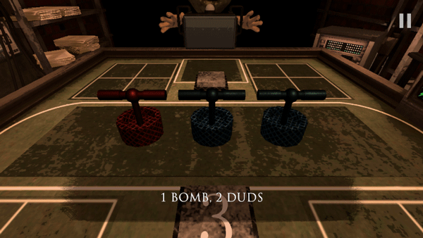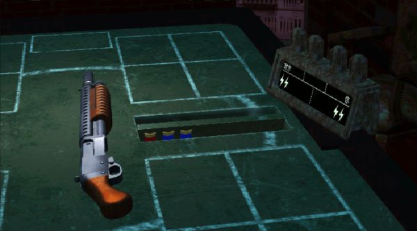 5、游戏规则很简单,玩法类似俄罗斯转盘,桌子上有着一把散弹枪,第一回合有三枚子弹,2枚空弹、1枚真弹,后面的回合真弹会增多;